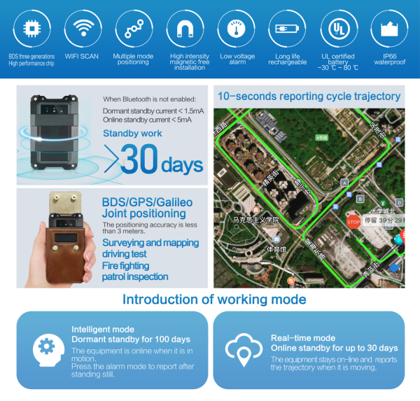 AT07 is 4G CAT1+GSM Protable Magnetic GPS tracker with GPS/Beidou/Galileo/AGPS/LBS/WIFI positioning, which support bluetooth, WIFI scan, Intelligent working mode, Ultra low power consumption. It can support to detect motion atuomatically, It has 5000mAh rechargeable battery, which is widely used in personnel positioning, vehicle positioning, fleet management and object tracking.